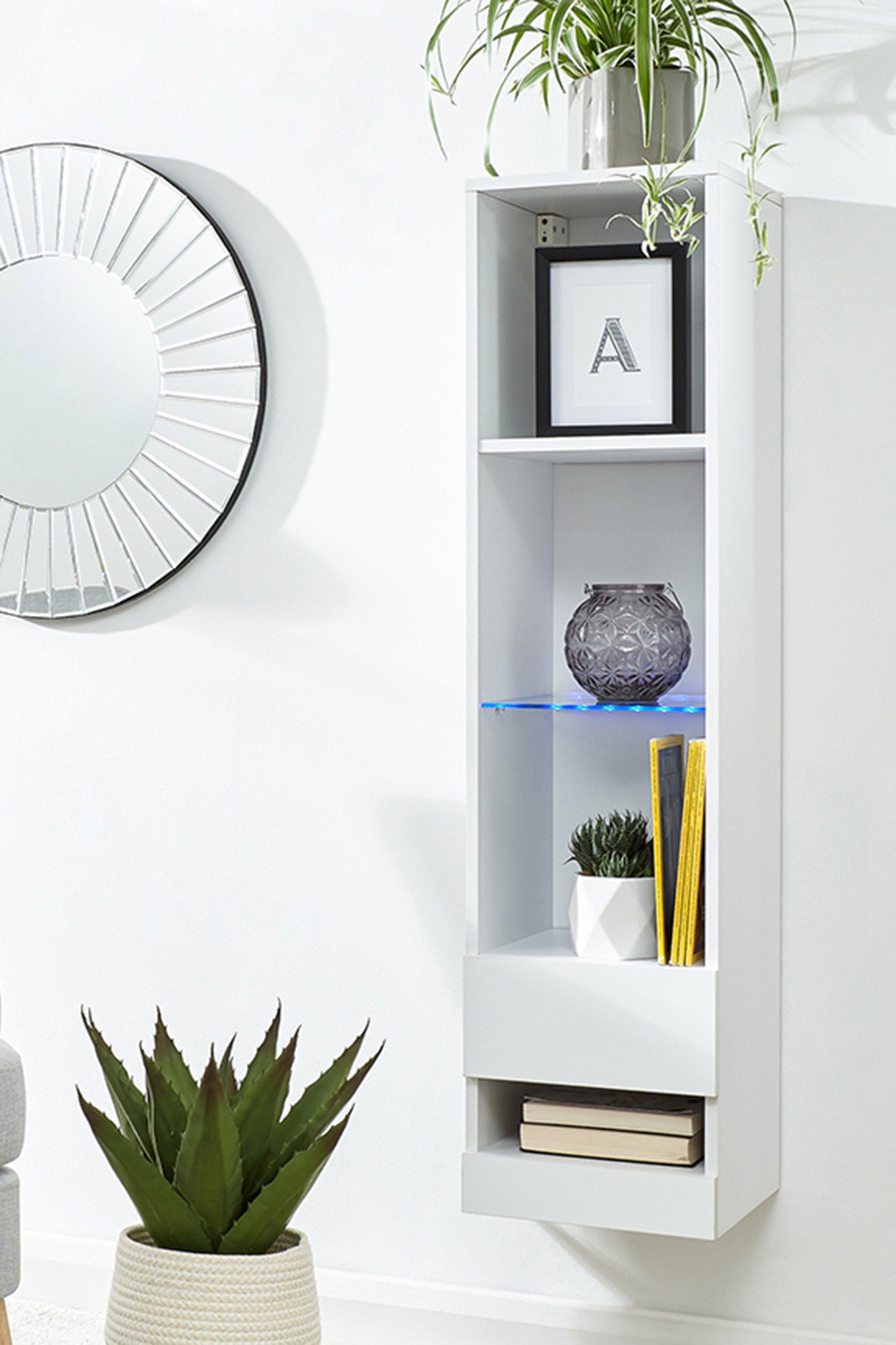 Galicia Wall Mounted Tall Shelf Unit With Led Lights Studio